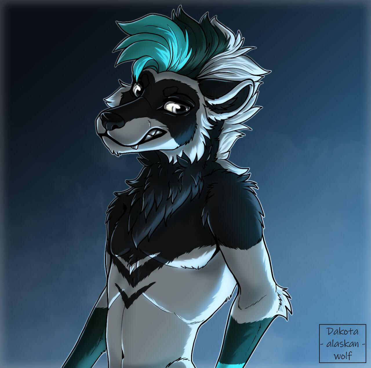2) Front anthro fullbody + spine view, 1 headshot, name/info box, color pallet, mouth close up, 3 items of choice - 150€